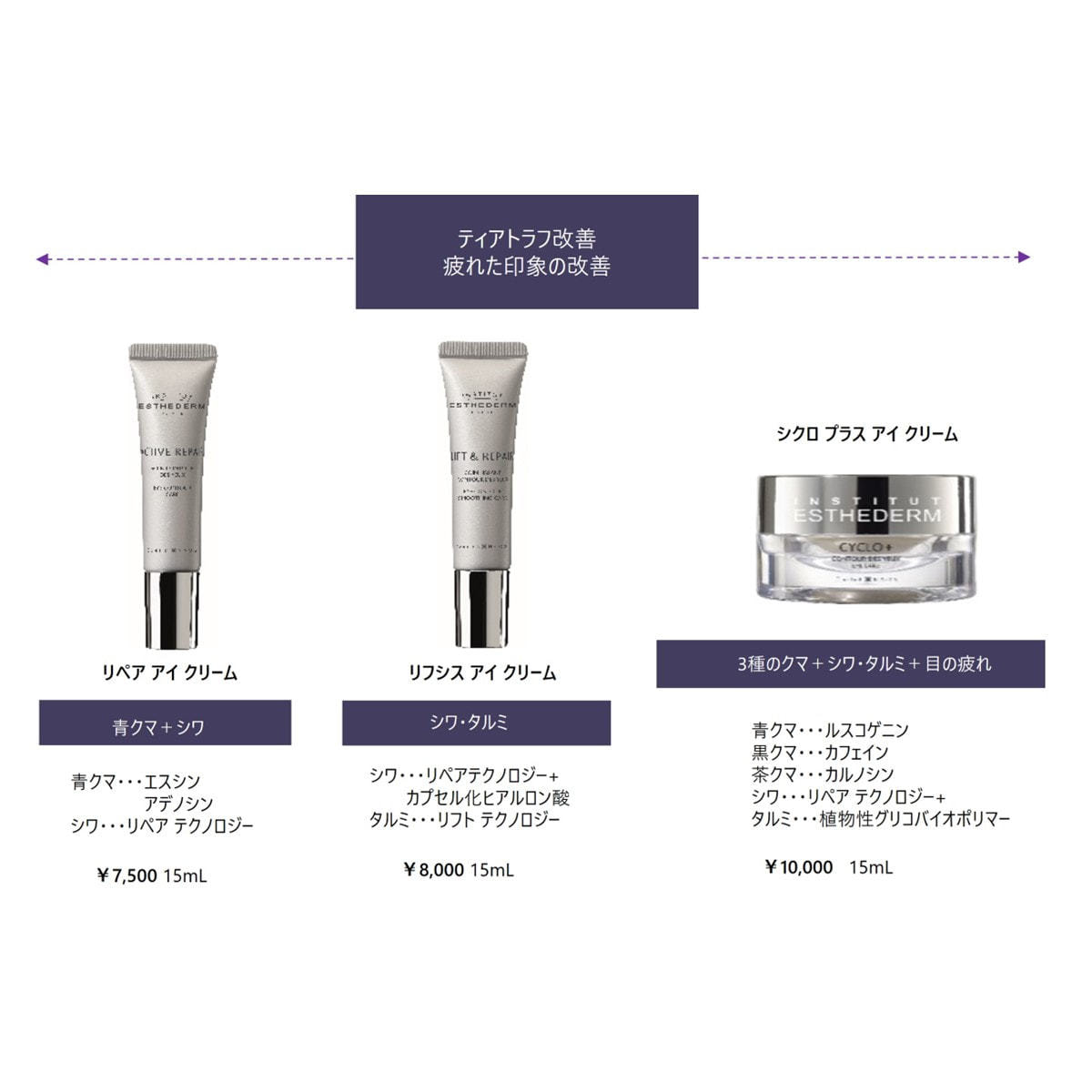 浸透性が高く、傷つきやすく敏感な目の周りを再構築し、小じわ、クマ、たるみ等のエイジングサインを改善します。