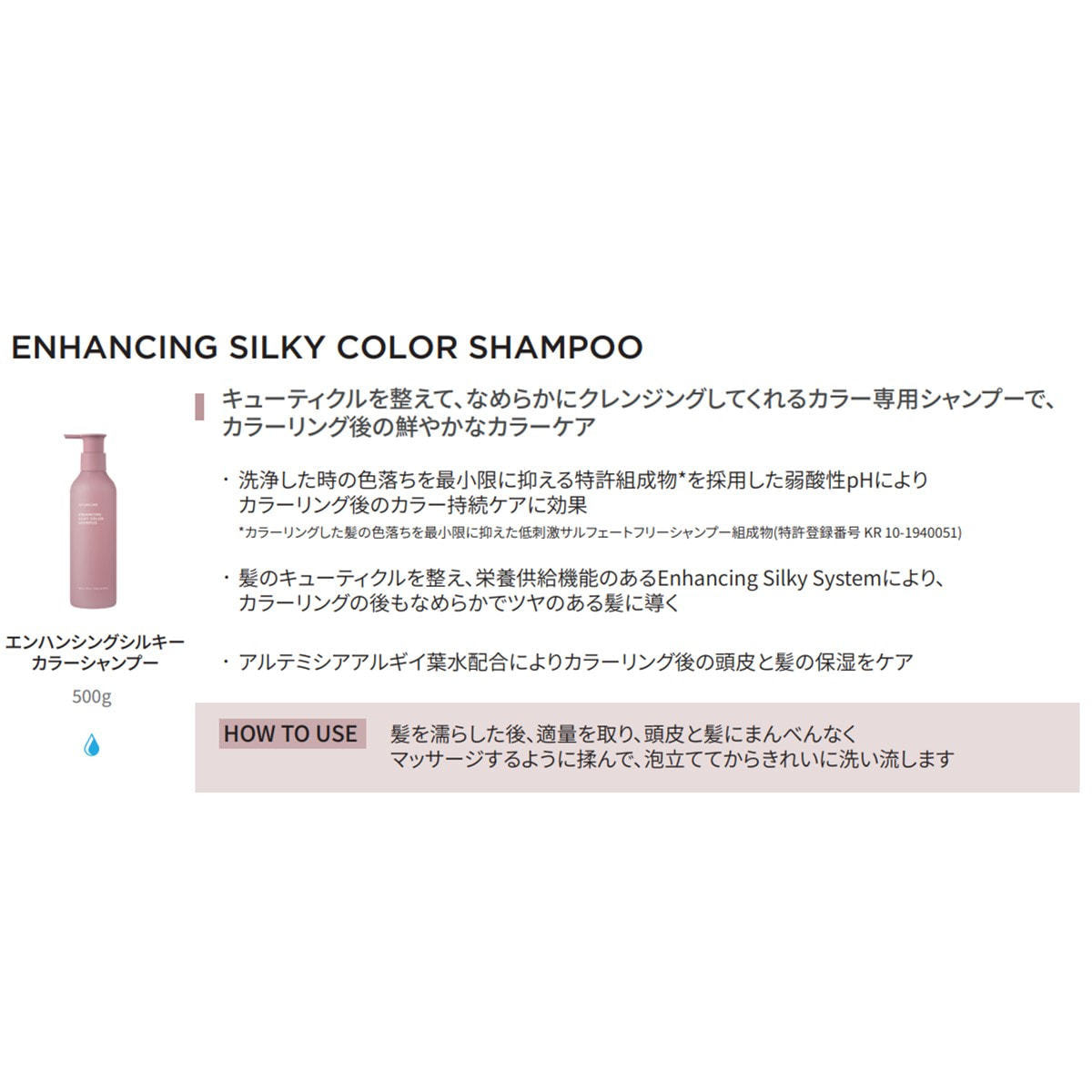 商品名:アユンチェ エンハンシング シルキーカラーシャンプ― 500ml