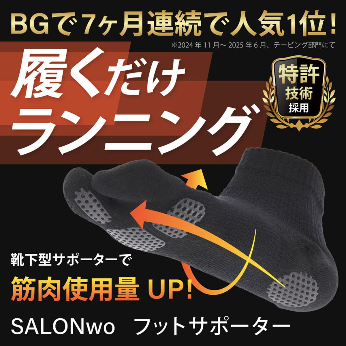 特許技術採用のサポーターで、足裏の土踏まずのアーチの形成をサポート。