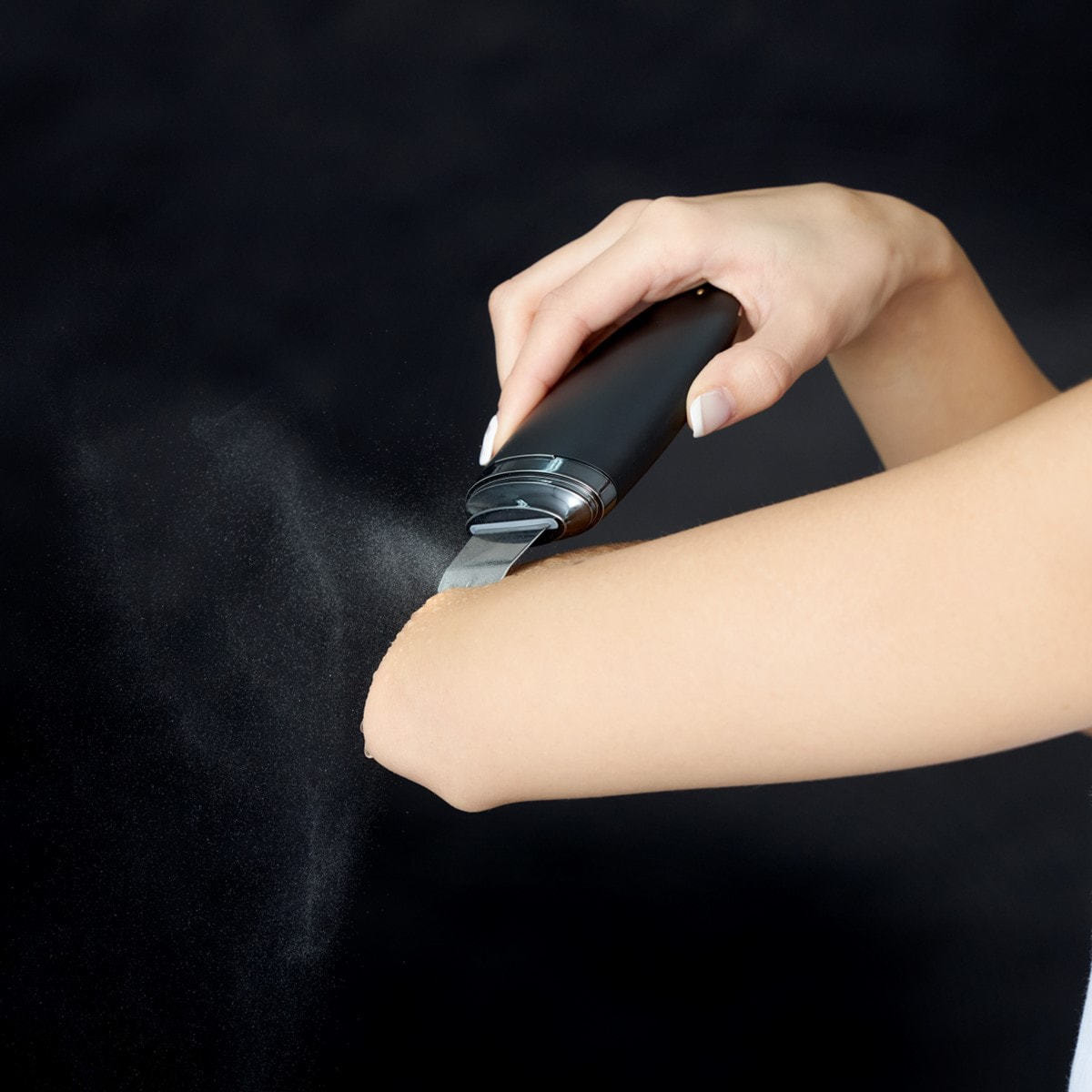 超音波振動でお肌の上の水を振動させ、ウォーターピーリング。