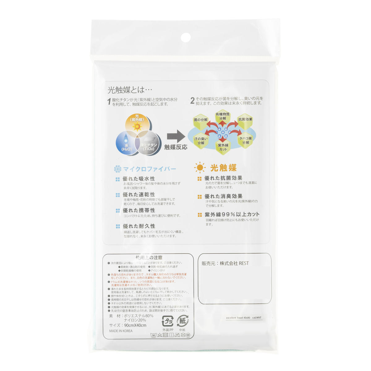 「エクセレントタオル」は、抜群の吸水性をもつマイクロファイバーに光触媒加工を施したタオルです。