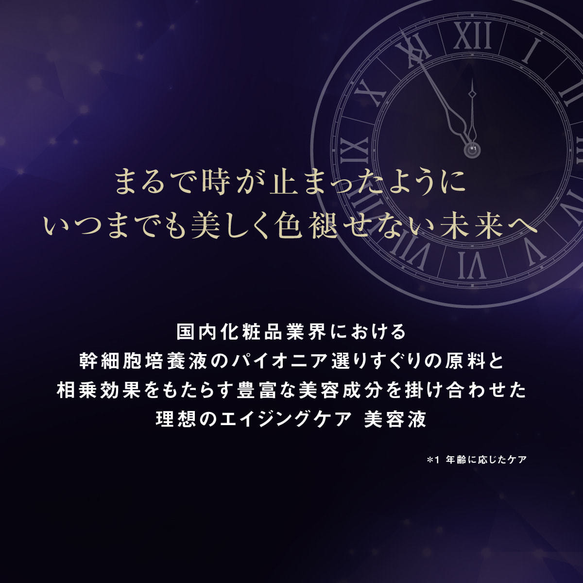 国内化粧品業界における幹細胞培養液のパイオニア選りすぐりの原料と相乗効果をもたらす豊富な美容成分を掛け合わせた理想のエイジングケア美容液。