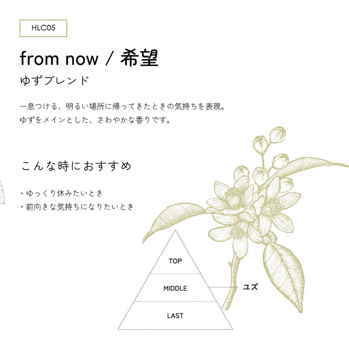 ゆずをメインとした、さわやかな香りです。