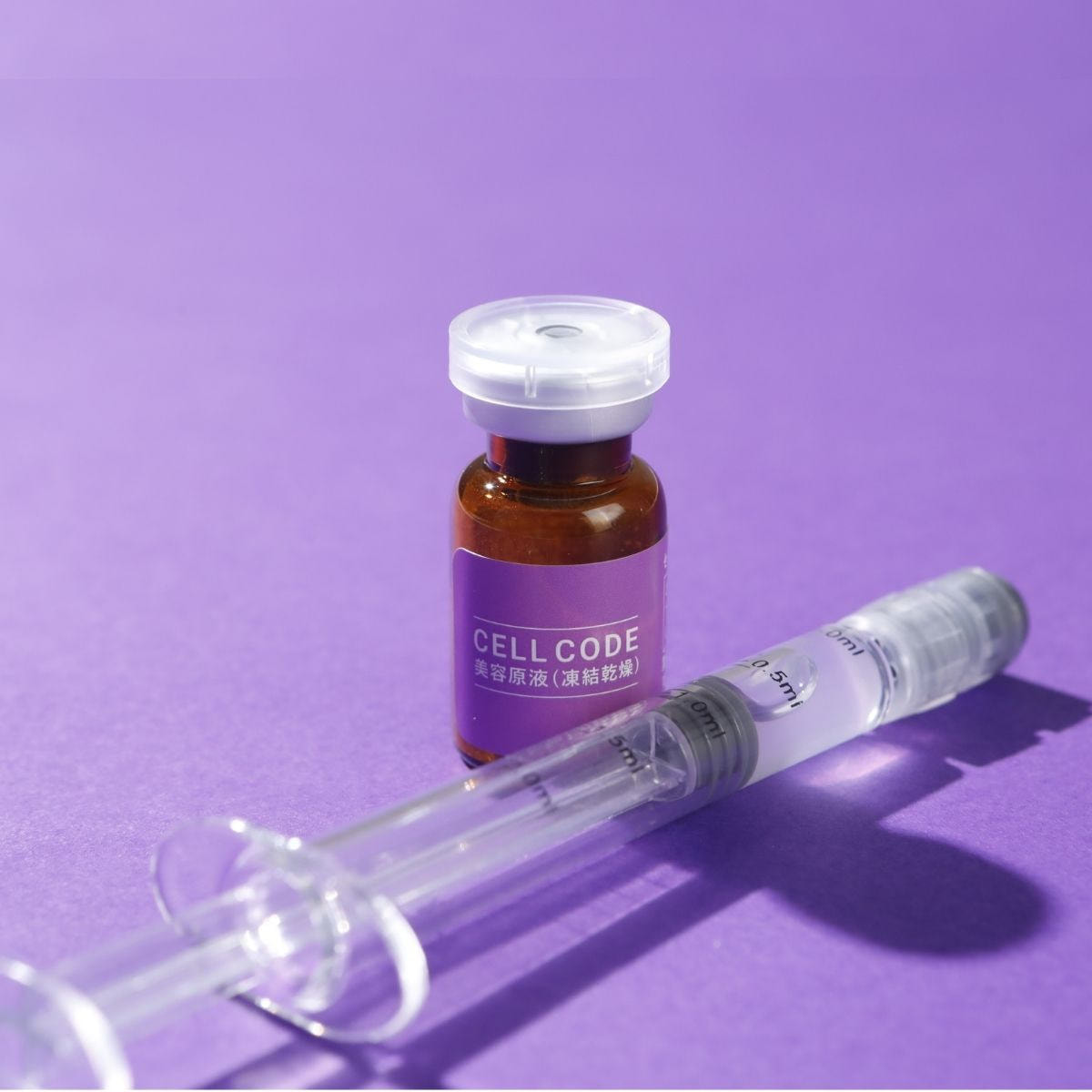 セルコード美容原液マトリックス〈シリンジ〉: 水、グリセリン、1,2-ヘキサンジオール、レシチン、ヒト臍帯血細胞順化培養液、ヒトサイタイ血由来幹細胞エクソソーム、水添レシチン、コレステロール、トコフェロール
