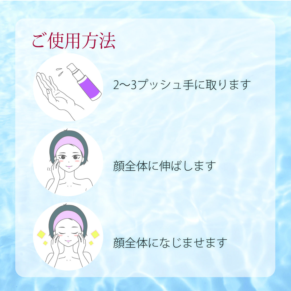 3.顔全体になじませます。(気になるところに部分的にもお使いいただけます。)