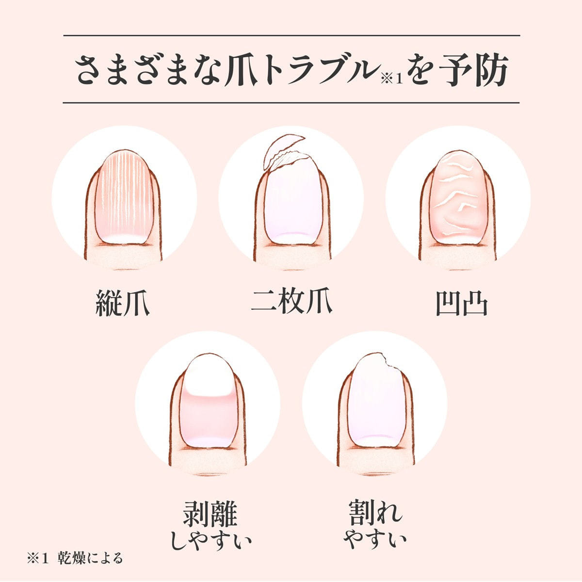 爪の角質層のすみずみまで浸透保湿し、爪にうるおいと栄養を与え、