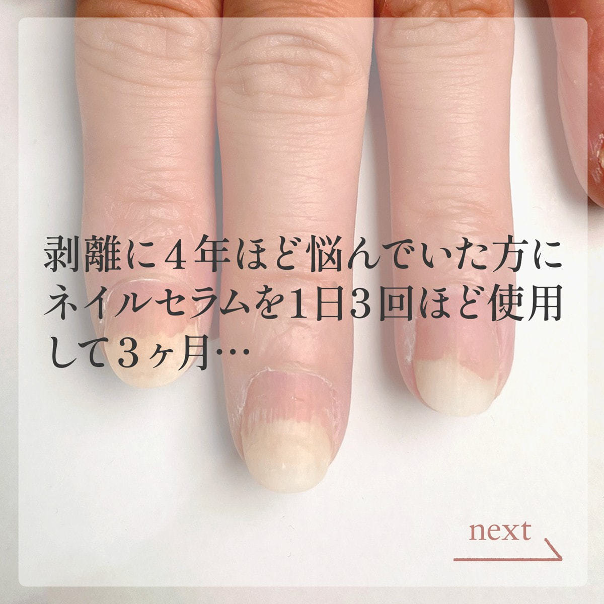 爪の縦ジワ、凹凸、二枚爪、割れ爪などのさまざまな爪トラブルを予防する美容液。