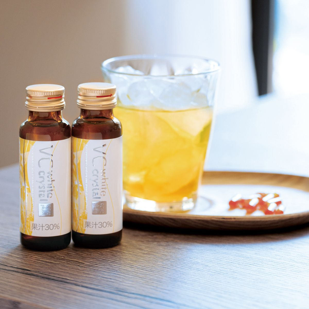内側から輝く美しさへと導くための美容成分と、RG92 が持つ温泉の力を掛け 合わせた、毎日のキレイをサポートするドリンクと、ビタミンC や美容成分をぎゅっと詰め込んだサプリメント「VC ビーズ」をセットにした新しいカタチの美容アイテム。