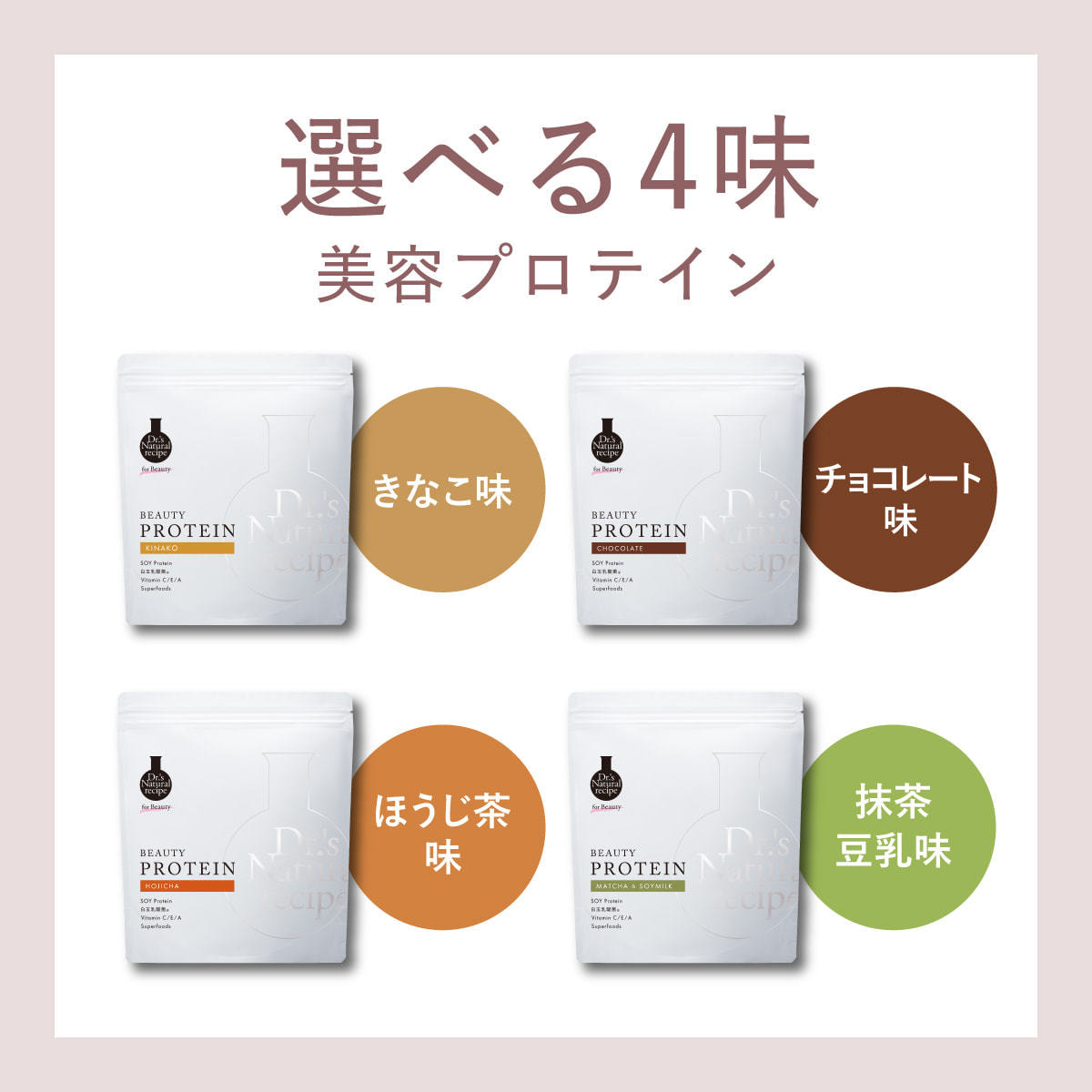 Dr.'s Natural recipeの美容プロテインシリーズは、たんぱく質を補給しながら、腸活*3と美容ケアができる、「美しさの土台をつくる」美容プロテインです
